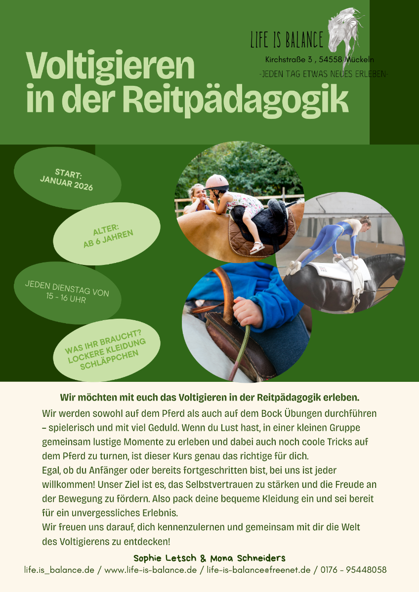Voltigieren jeden Dienstag 15 – 16 Uhr |